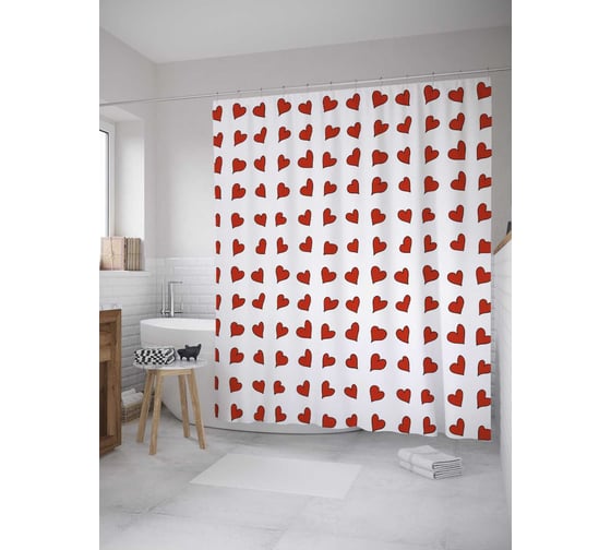 Сопутствующие товары для шторки-занавески JOYARTY Лежащие сердца из сатена, 180х200 см с крючками