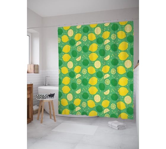 Штора (занавеска) для ванной JoyArty "Лимоны и лаймы" из сатена, 180х200 см с крючками, sc_64212