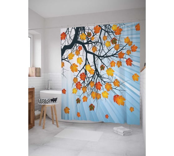 Штора (занавеска) для ванной JoyArty "Лиственная грусть" из сатена, 180х200 см с крючками, sc_7111