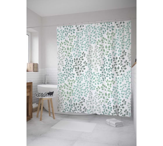 Сопутствующие товары для шторки-занавески JOYARTY Лиственный узор из сатена, 180х200 см с крючками
