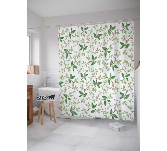 Сопутствующие товары для шторки-занавески JOYARTY Лиственный узор из сатена, 180х200 см с крючками
