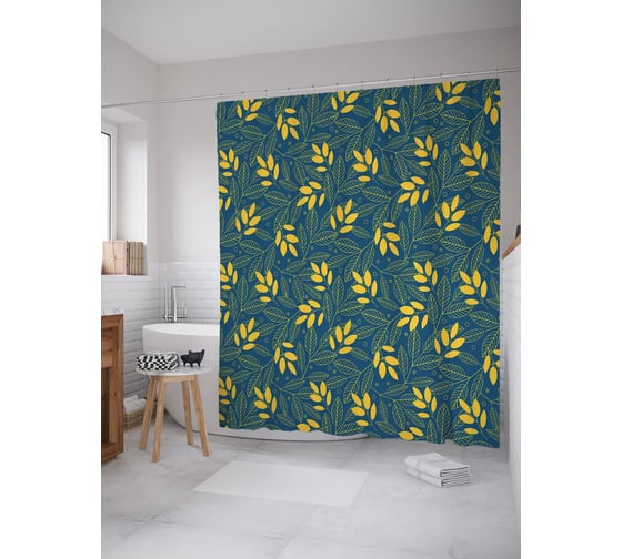 Штора (занавеска) для ванной JoyArty "Листья и абрис" из сатена, 180х200 см с крючками, sc_64305