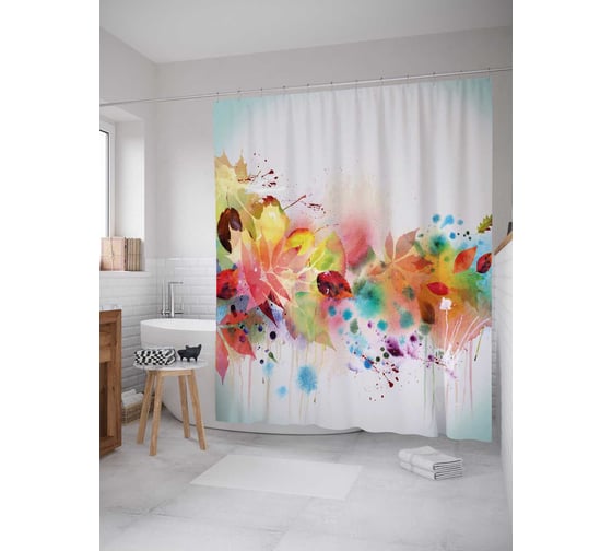 Сопутствующие товары для шторки-занавески JOYARTY Листья в красках из сатена, 180х200 см с крючками