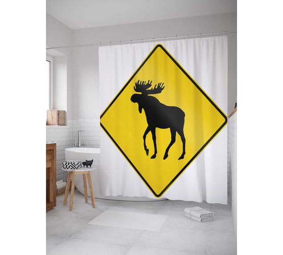 Штора (занавеска) для ванной JoyArty "Лось на знаке" из сатена, 180х200 см с крючками, sc_23357
