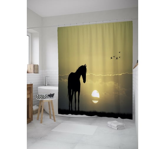 Штора (занавеска) для ванной JoyArty "Лошадь на закате" из сатена, 180х200 см с крючками, sc_39322