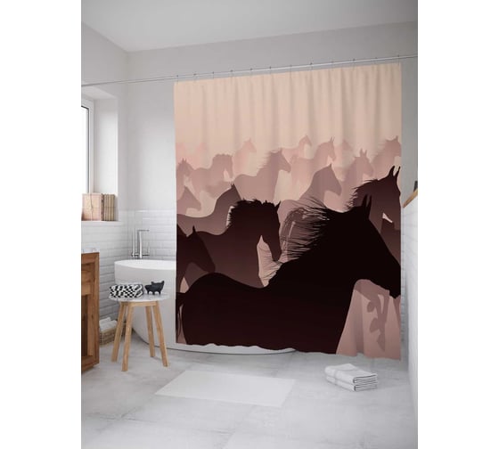 Сопутствующие товары для шторки-занавески JOYARTY Лошадиный бег из сатена, 180х200 см с крючками