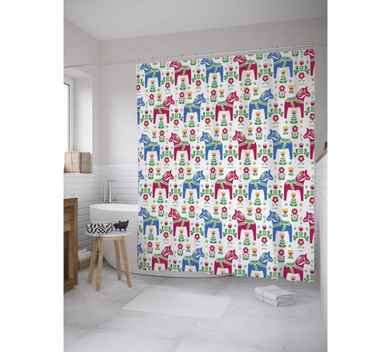 Штора (занавеска) для ванной JoyArty "Лошадки с седлом" из сатена, 180х200 см с крючками, sc_52416