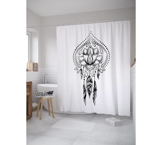 Штора (занавеска) для ванной JoyArty "Лотос бохо" из сатена, 180х200 см с крючками, sc_59508