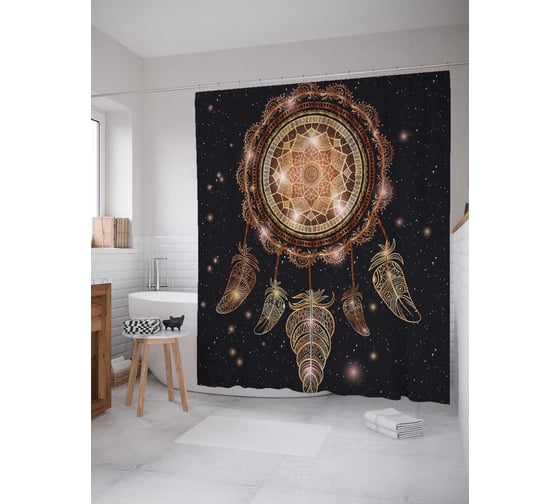 Сопутствующие товары для шторки-занавески JOYARTY Ловец снов и мандала из сатена, 180х200 см с крючками