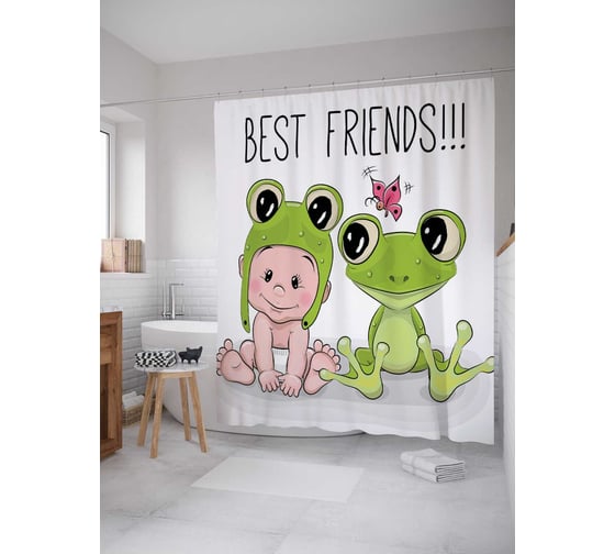 Сопутствующие товары для шторки-занавески JOYARTY Лучшие друзья лягушки из сатена, 180х200 см с крючками