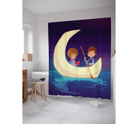 Штора (занавеска) для ванной JoyArty "Луна для любимой" из сатена, 180х200 см с крючками, sc_91980