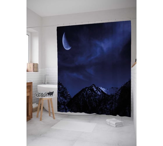 Штора (занавеска) для ванной JoyArty "Луна над горами" из сатена, 180х200 см с крючками, sc_38841