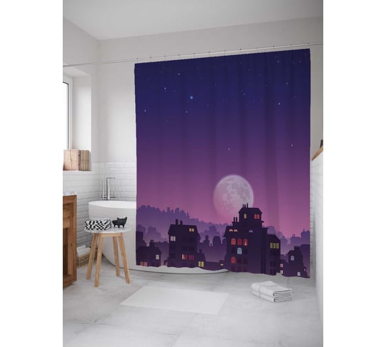 Штора (занавеска) для ванной JoyArty "Луна за городом" из сатена, 180х200 см с крючками, sc_18028