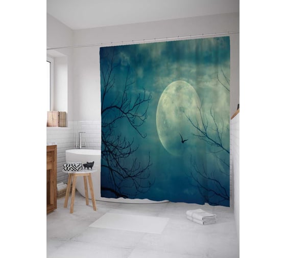 Штора (занавеска) для ванной JoyArty "Лунная ночь" из сатена, 180х200 см с крючками, sc_22076