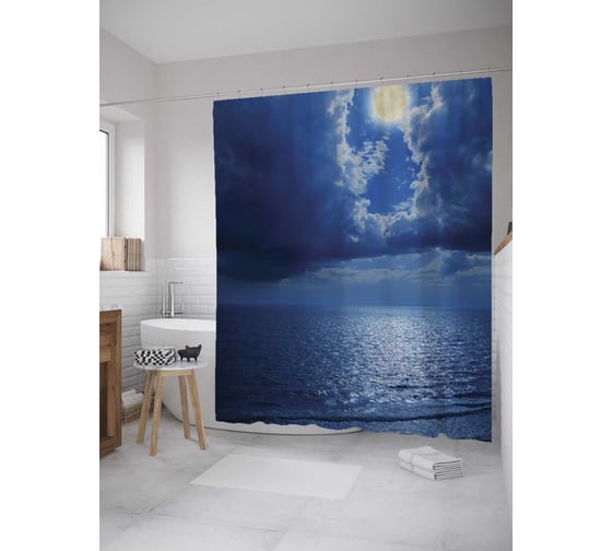 Штора (занавеска) для ванной JoyArty "Лунное море" из сатена, 180х200 см с крючками, sc_10244
