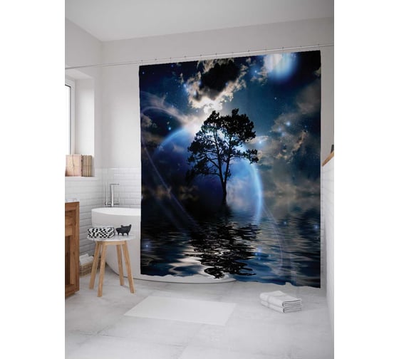 Штора (занавеска) для ванной JoyArty "Лунное сияние на реке" из сатена, 180х200 см с крючками, sc_14955