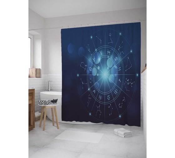 Штора (занавеска) для ванной JoyArty "Лунный гороскоп" из сатена, 180х200 см с крючками, sc_33721