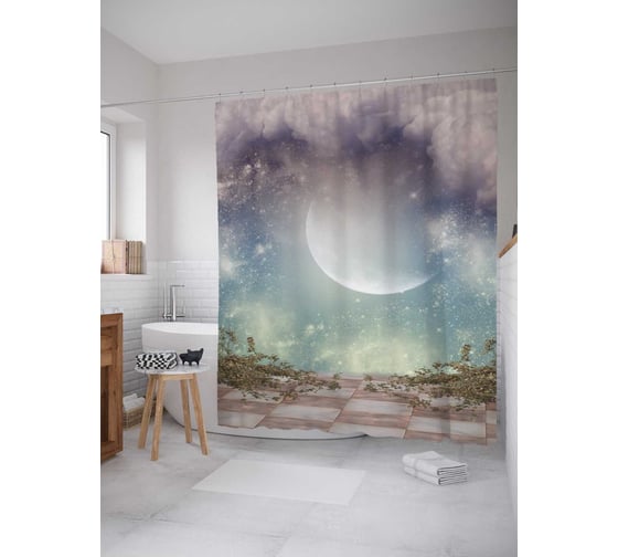 Штора (занавеска) для ванной JoyArty "Лунный проход" из сатена, 180х200 см с крючками, sc_12902