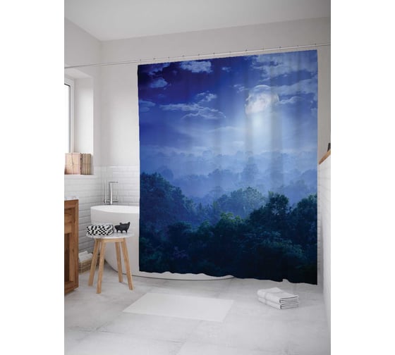 Штора (занавеска) для ванной JoyArty "Лунный туман" из сатена, 180х200 см с крючками, sc_12920