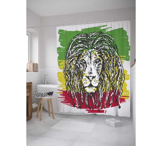 Штора (занавеска) для ванной JoyArty "Львиные дреды" из сатена, 180х200 см с крючками, sc_36081