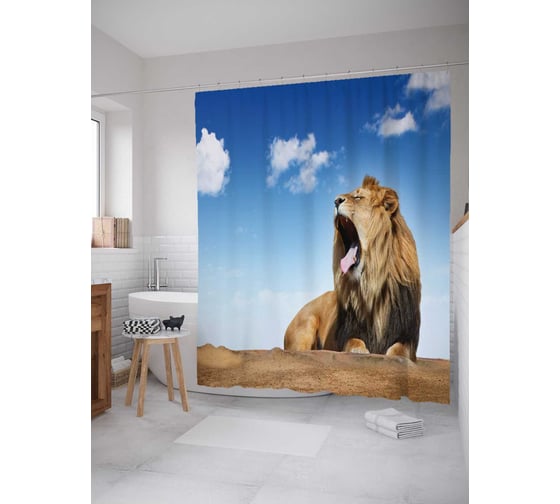 Штора (занавеска) для ванной JoyArty "Львиный рев" из сатена, 180х200 см с крючками, sc_12716
