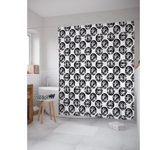 Штора (занавеска) для ванной JoyArty "Львы трафареты" из сатена, 180х200 см с крючками, sc_64281