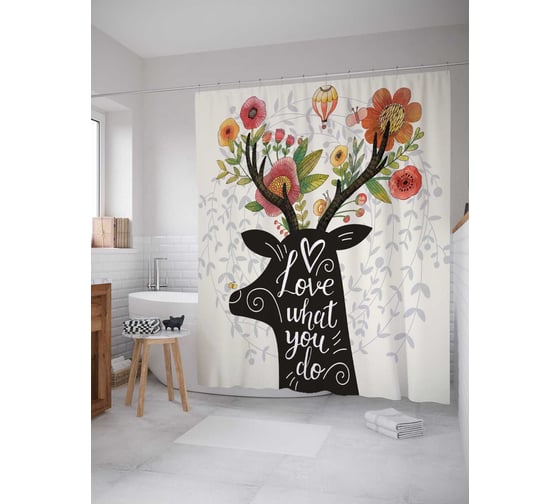 Штора (занавеска) для ванной JoyArty "Люблю что ты делаешь" из сатена, 180х200 см с крючками, sc_7822