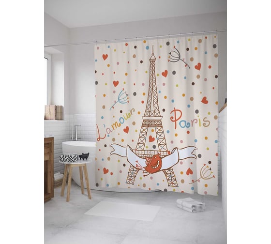Сопутствующие товары для шторки-занавески JOYARTY Люблю париж из сатена, 180х200 см с крючками