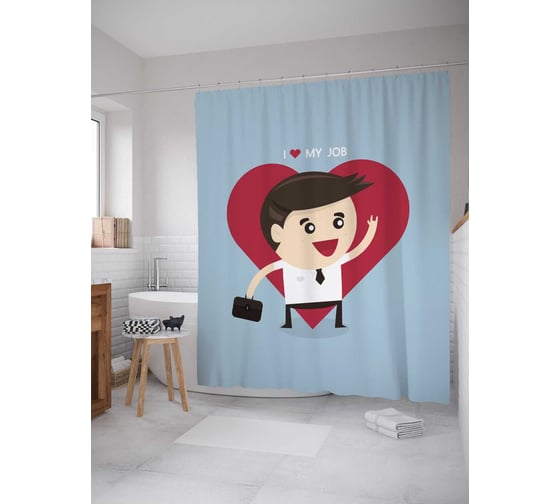 Штора (занавеска) для ванной JoyArty "Люблю свою работу" из сатена, 180х200 см с крючками, sc_91970