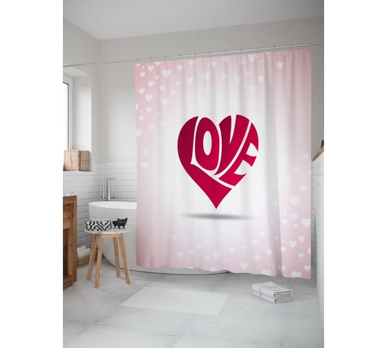 Штора (занавеска) для ванной JoyArty "Любовь в сердце" из сатена, 180х200 см с крючками, sc_53017