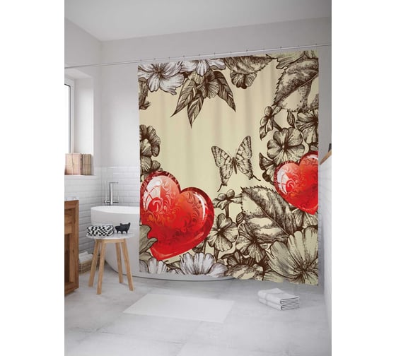 Штора (занавеска) для ванной JoyArty "Любовное ожидание" из сатена, 180х200 см с крючками, sc_11731