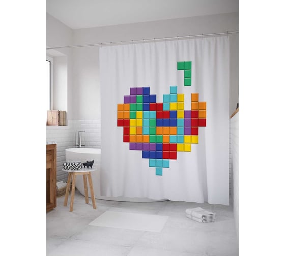 Сопутствующие товары для шторки-занавески JOYARTY Любовный пазл из сатена, 180х200 см с крючками