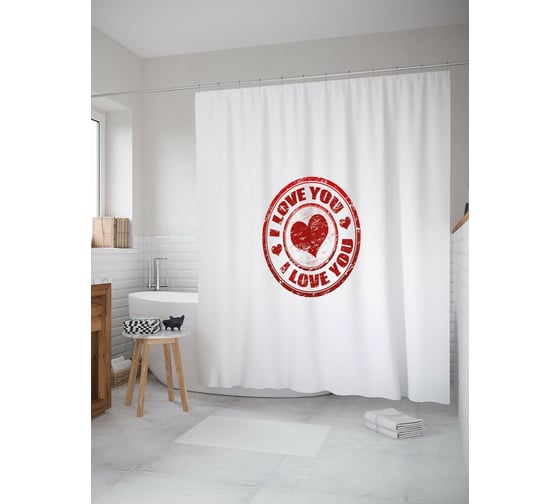 Штора (занавеска) для ванной JoyArty "Любовный штамп" из сатена, 180х200 см с крючками, sc_53018