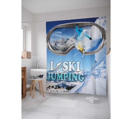 Штора (занавеска) для ванной JoyArty "Лыжные прыжки" из сатена, 180х200 см с крючками, sc_7678