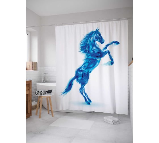 Штора (занавеска) для ванной JoyArty "Магическая лошадь" из сатена, 180х200 см с крючками, sc_16163