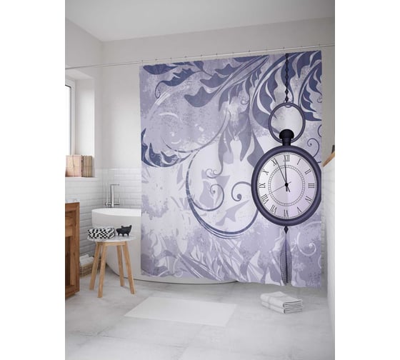 Штора (занавеска) для ванной JoyArty "Магические часы" из сатена, 180х200 см с крючками, sc_15856