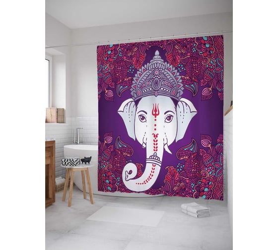 Штора (занавеска) для ванной JoyArty "Магический слон" из сатена, 180х200 см с крючками, sc_16868