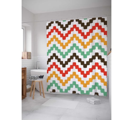 Штора (занавеска) для ванной JoyArty "Магия зигзагов" из сатена, 180х200 см с крючками, sc_4334