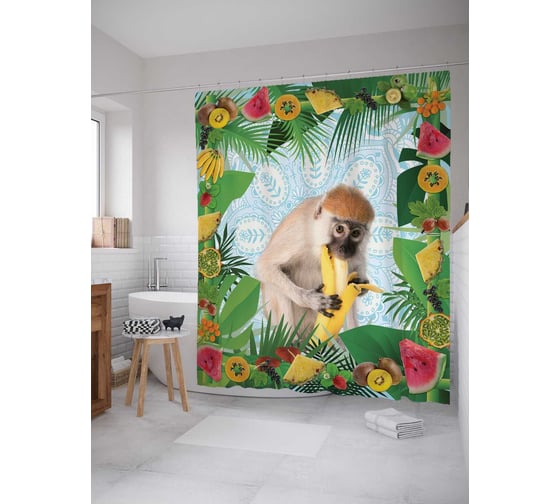 Сопутствующие товары для шторки-занавески JOYARTY Макака и банан из сатена, 180х200 см с крючками