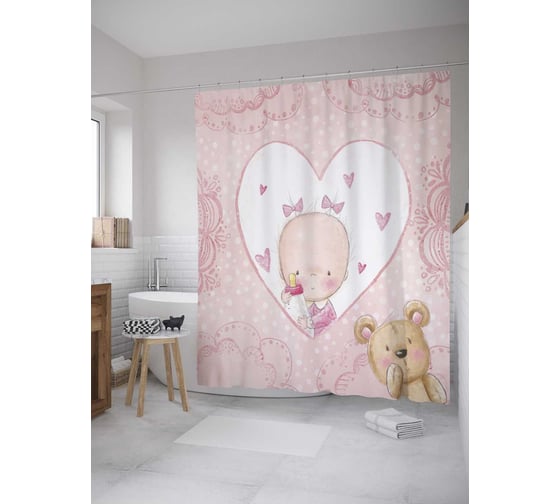 Штора (занавеска) для ванной JoyArty "Малышка в сердце" из сатена, 180х200 см с крючками, sc_35122