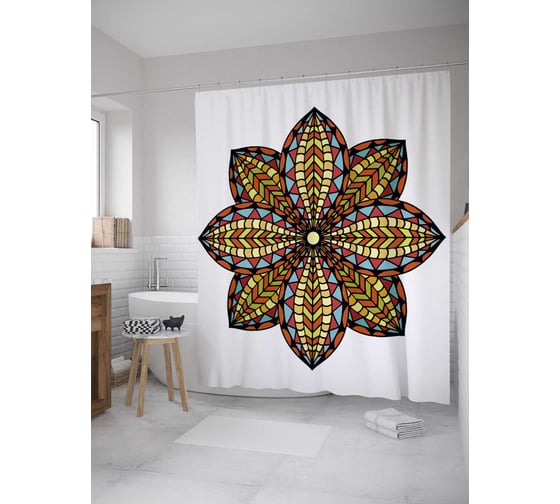Штора (занавеска) для ванной JoyArty "Мандала коломбина" из сатена, 180х200 см с крючками, sc_28563