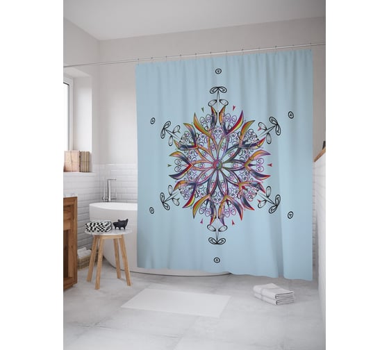 Штора (занавеска) для ванной JoyArty "Мандала-снежинка" из сатена, 180х200 см с крючками, sc_58800