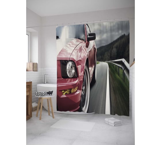 Сопутствующие товары для шторки-занавески JOYARTY Машина в пути из сатена, 180х200 см с крючками