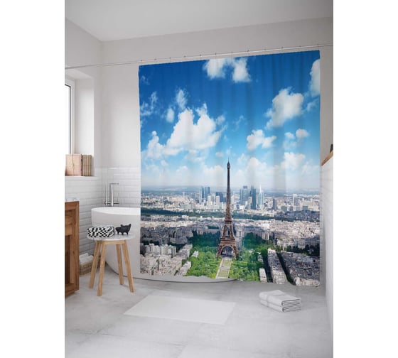 Штора (занавеска) для ванной JoyArty "Масштабы Эйфелевой башни" из сатена, 180х200 см с крючками, sc_37354