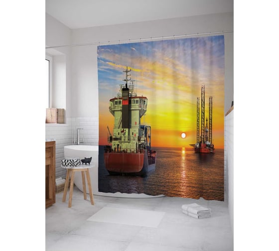 Штора (занавеска) для ванной JoyArty "Массивные корабли" из сатена, 180х200 см с крючками, sc_17827