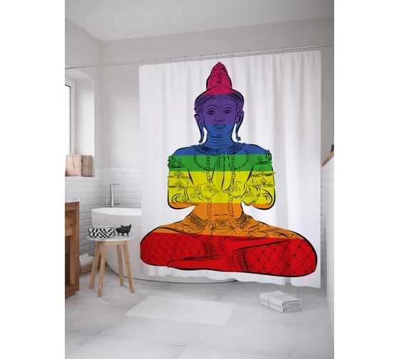 Штора (занавеска) для ванной JoyArty "Медитация в радуге" из сатена, 180х200 см с крючками, sc_18751
