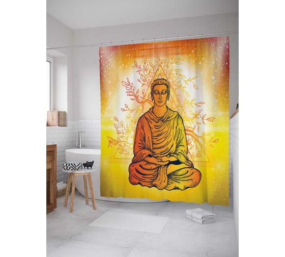 Штора (занавеска) для ванной JoyArty "Медитирующий Будда.Путь к нирване" из сатена, 180х200 см с крючками, sc_22470