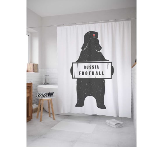 Штора (занавеска) для ванной JoyArty "Медведь футболист" из сатена, 180х200 см sc_378457
