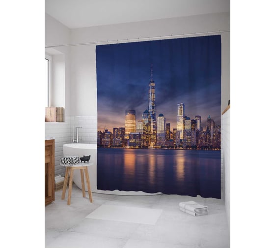 Сопутствующие товары для шторки-занавески JOYARTY Мегаполис над водой из сатена, 180х200 см с крючками