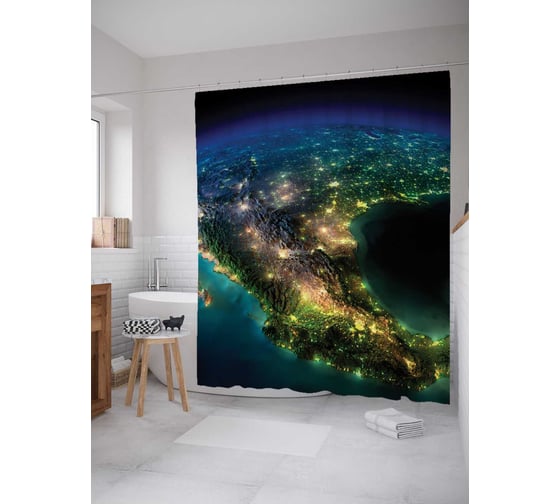 Штора (занавеска) для ванной JoyArty "Мексика из космоса" из сатена, 180х200 см с крючками, sc_6435
